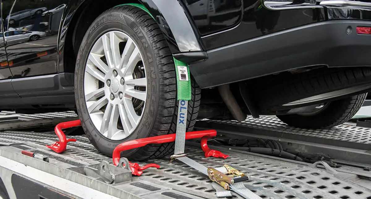 Oavsett om du anlitar en biltransportör, hyr, eller köper, en biltransport så kräver lagen att du lastsäkrar ordentligt. Det sker lämpligen med särskilda spännband som är klassade för fordonstransport. Det finns spännband som man kan dra genom fälgen, spännband med krok att sätta direkt i stålfälg eller spännband som går bakom hjulet. Om biltransporten har hålad lastyta kan man också välja 3-punkt spännband som går över däcket med greppgummi och som sedan fäster i hålplåten. Har man planer att köra med sin biltransport med hålad lastyta i Tyskland behöver spännbanden vara klassade enligt VDI 2700 8.1.